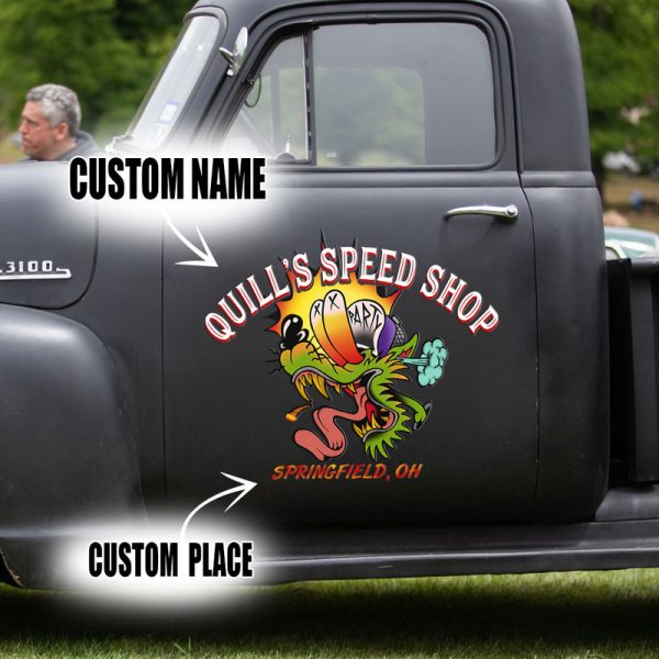 2 Pcs Personalized Old Chool Garage Hot Rod Garage Weirdo Kustom Kulture Vinyl Stickers