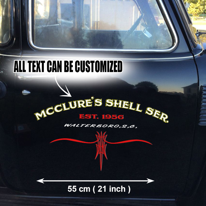 2 Pcs Personalized Pinstripe Hot Rod Garage Vinyl Stickers