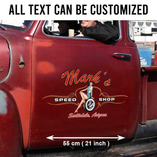 2 Pcs Personalized Pinup Girl Spark Plug Hot Rod Garage Pinstriping Cars Large Stickers