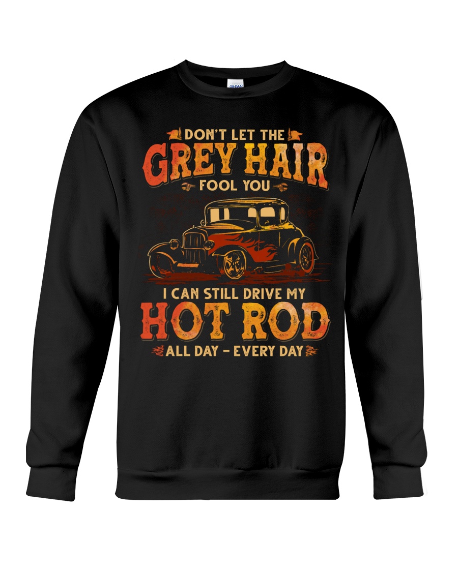 Hot Rod T Shirts Hoodie Sweatshirt with Quote Grey Hair Still Drive My Hot Rod All Day for Hot Rod Lovers